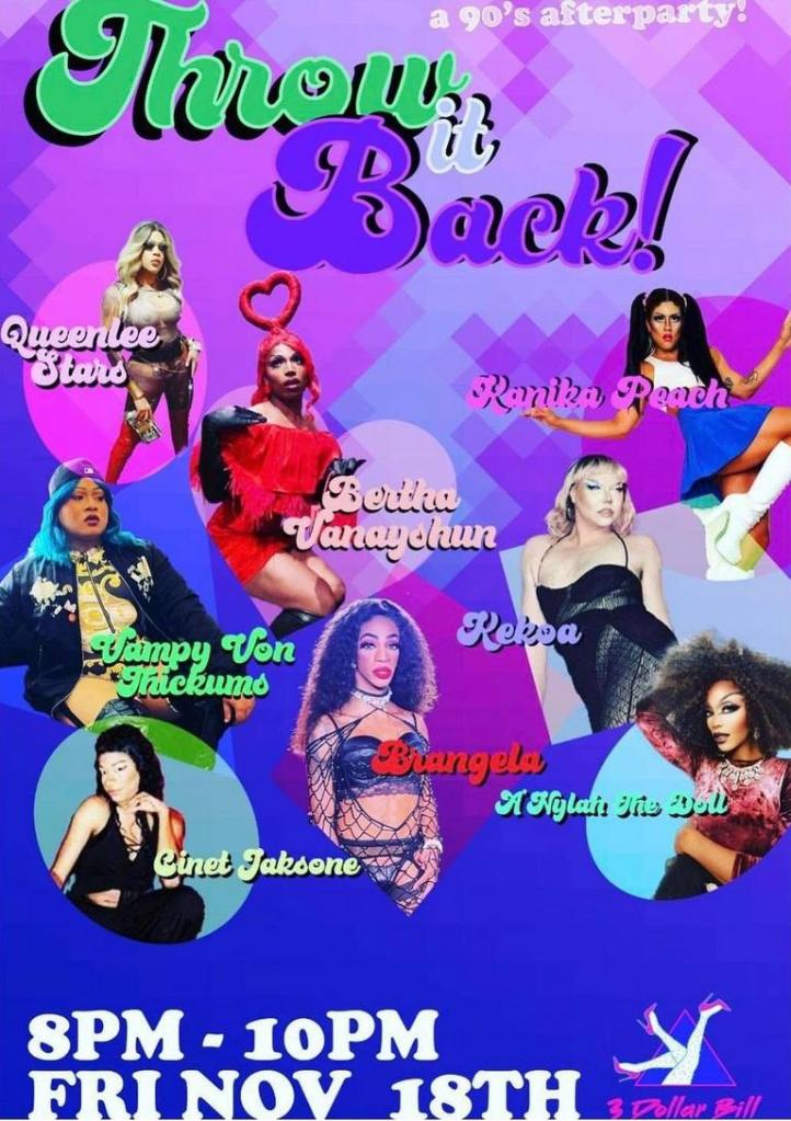 You also have another fun gig coming up: “Throw It Back” at 3 Dollar Bill on November 18th! This is another large cast of queens, taking us back to the day with some retro numbers. Tell us more!