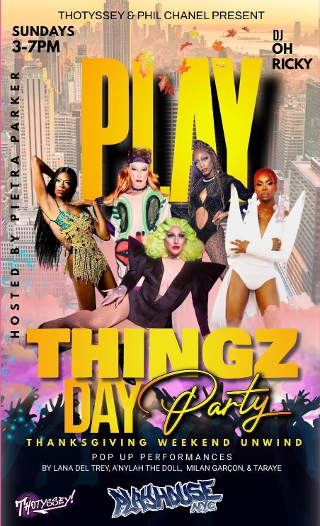 These days, we’re happy to have you in the cast of “Playthingz,” the newest drag revue at Playhouse! Thotyssey produces that with “Polish the Queen’s” Phil Chanel, and the cast also includes Pietra Parker, Milan Garçon, Lana Del Trey, A’Nylah The Doll and VJ OhRicky! It’s every Sunday 3pm to 7pm and it’s a true ki! How fun has this show been?