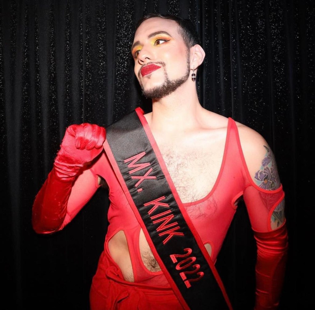 Yes–this past June I won the title of Mx. Kink 2022! It was a kink pageant done by Leather & Lace, and I represented men in lingerie. It was a great moment for me because of the work I did on the number, and everyone was super supportive!
