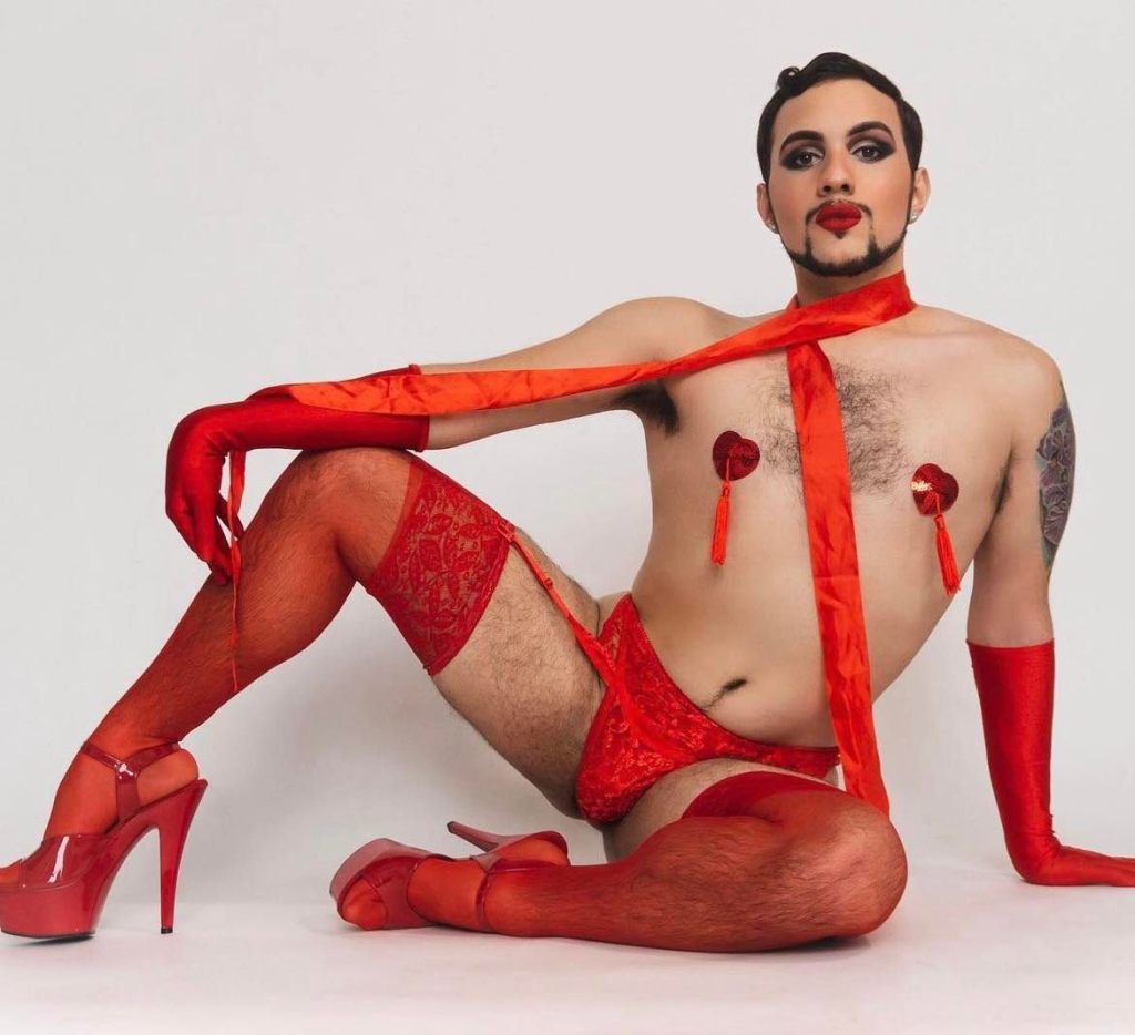 I always aim to embody a mixture of femme and masc energy in my numbers / looks. I think I have always been a bit of both equally, so that naturally comes through in what I like. I’m inspired by musicals with risqué concepts and costumes, and the pop and Latin divas I grew up on. My style is usually high energy / seductive dance inspired. I love to move my body, and let my body tell the story of the tease! Still on that journey of expression, though and will evolve as time let’s me.