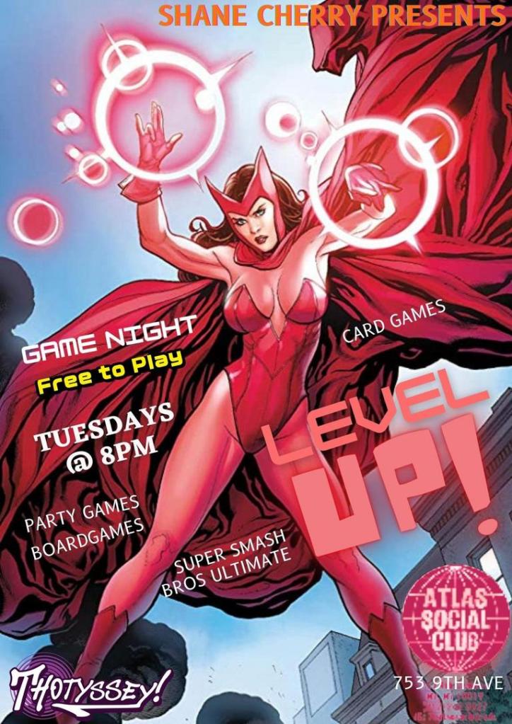 Skye Walker & Jacklynn Hyde (10:30pm) - ATLAS SOCIAL CLUB: “Level Up” geeky name night hosted by Thotyssey & Shane Cherry (8pm)