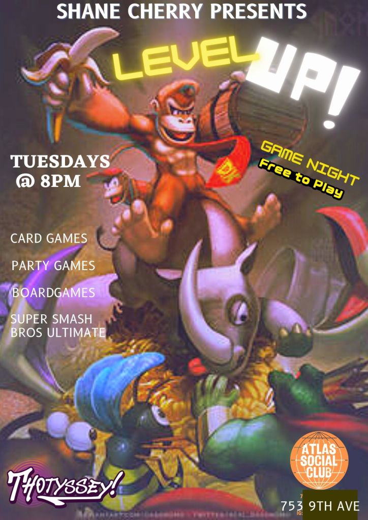 Skye Walker & Jacklynn Hyde (10:30pm) - ATLAS SOCIAL CLUB: “Level Up” geeky name night hosted by Thotyssey & Shane Cherry (8pm)