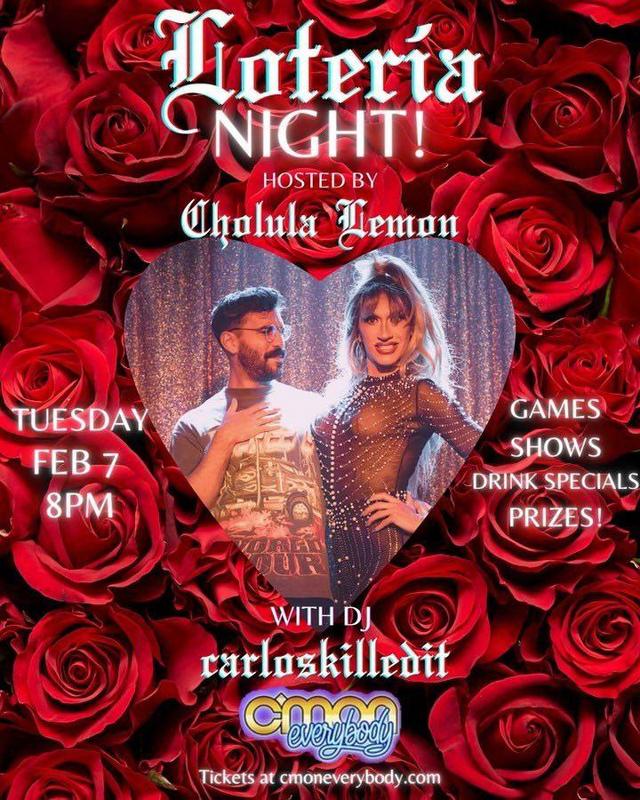 Loteria with Cholula Lemon is so much fun. She’s an incredible host and her numbers are everything. She loves a reveal! If you’re not familiar, Loteria is essentially a Latinx version of bingo. We spend the night playing games, hitting the Piñata, and gossiping. It’s like hanging out with your favorite Aunts, lol! We host this on the first Tuesday of every month at C’mon. We will be at C’mon Everybody on Tuesday, February 7 at 8 pm!