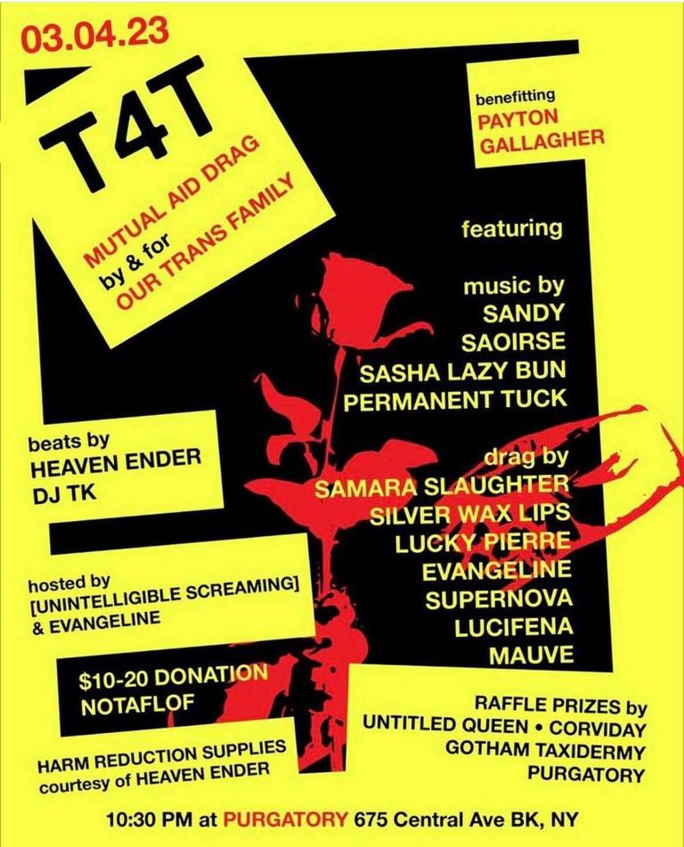 It’s called “T4T“… its a fundraiser for a mutual aid fund for a community member. It’s $10 to 20 sliding scale cover, but its also a NOTAFLOF show!