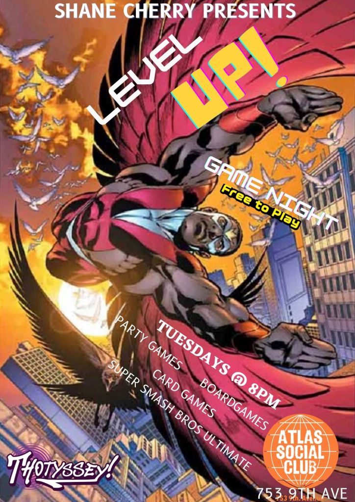 Skye Walker & Jacklynn Hyde (10:30pm) - ATLAS SOCIAL CLUB: “Level Up” geeky name night hosted by Thotyssey & Shane Cherry (8pm)