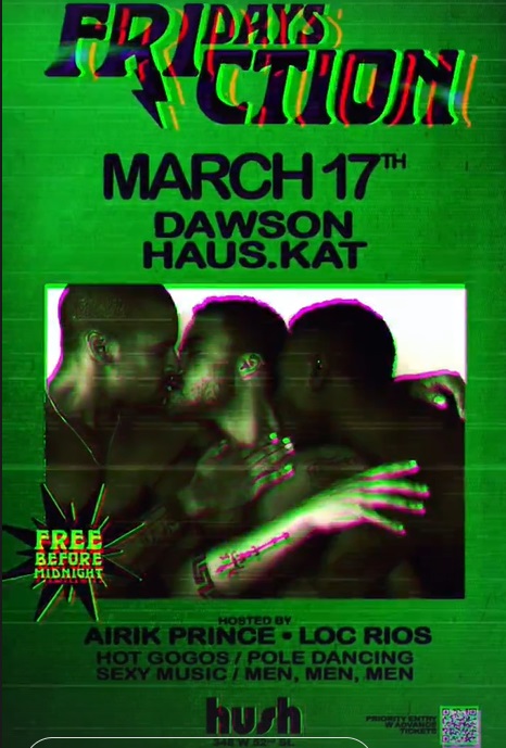 I’m hosting Hush’s “Friction Fridays.” And I don’t know, Sunday maybe I’ll go to “Battle Hymn” if I’m still standing by then; I love a Ladyfag party.