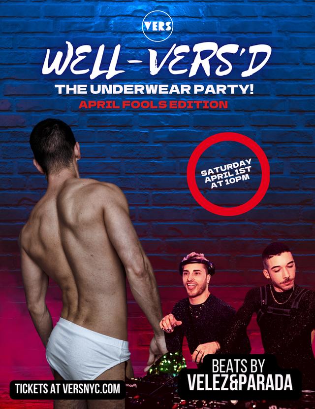 And later that night, you’ll be back at VERS for the fifth edition of their “Well-Vers’d” underwear party! Hot!