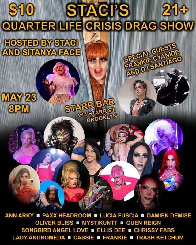 And this is really exciting: May 23rd will be “Staci’s Quarter Life Crisis Drag Show” at Starr Bar! That’s gonna have a big cast, and I understand that besides your birthday it will be you your big show producing debut.