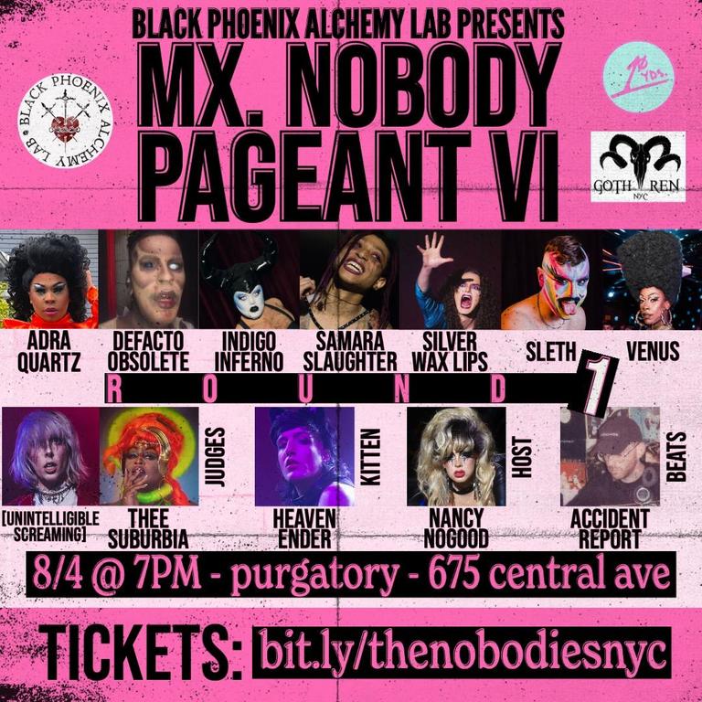 Next up for you at Purgatory: you’re competing in the first preliminary round of this year’s epic “Mx. Nobody” on August 4th! Will this be your first big competition?