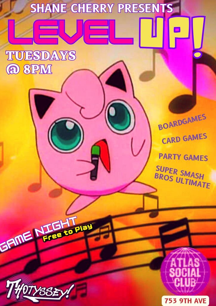 “Stage Fright” feat. Marti Gould Cummings & Brandon James Gwinn (10pm) - ATLAS SOCIAL CLUB: “Level Up” geeky name night hosted by Thotyssey & Shane Cherry (8pm)