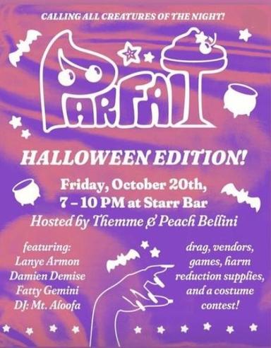 You’ve also got some spooky season shows coming up as well, such as the Halloween edition of “Parfait” with Themme and Peach Bellini at Starr Bar on Friday, October 20! What’s going down there?