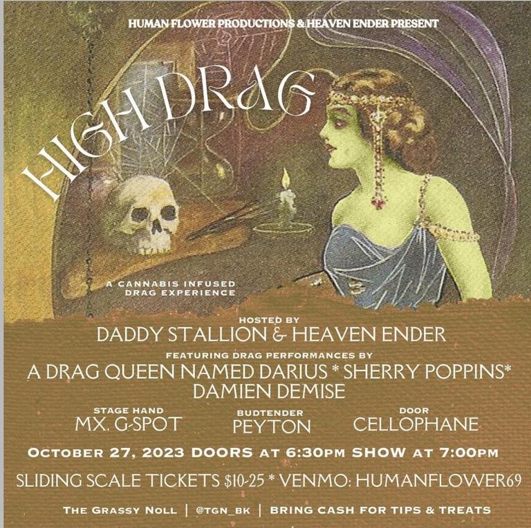 And on the 27th, you’ll be at The Grassy Noll in Brooklyn for a Halloween edition of “High Drag” with Daddy Stallion and Heaven Ender!