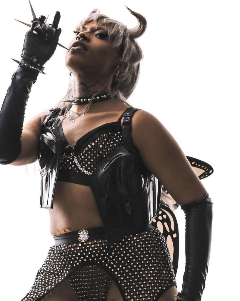Performing and hosting a big show with my partner-in-crime and drag sib, Supernova; [we’re always] taking chances. And honestly, just surprising myself sometimes at my own body’s ability on stage as I wholeheartedly cannot see anything. Not only do I basically black out and just get in the zone as if I’m in a music video, but I honestly can’t see. I have terrible vision, I’m partially blind… and wearing lashes and having hair and lights in my face doesn’t help. So I just allow my body to take its lead to the music and the space.