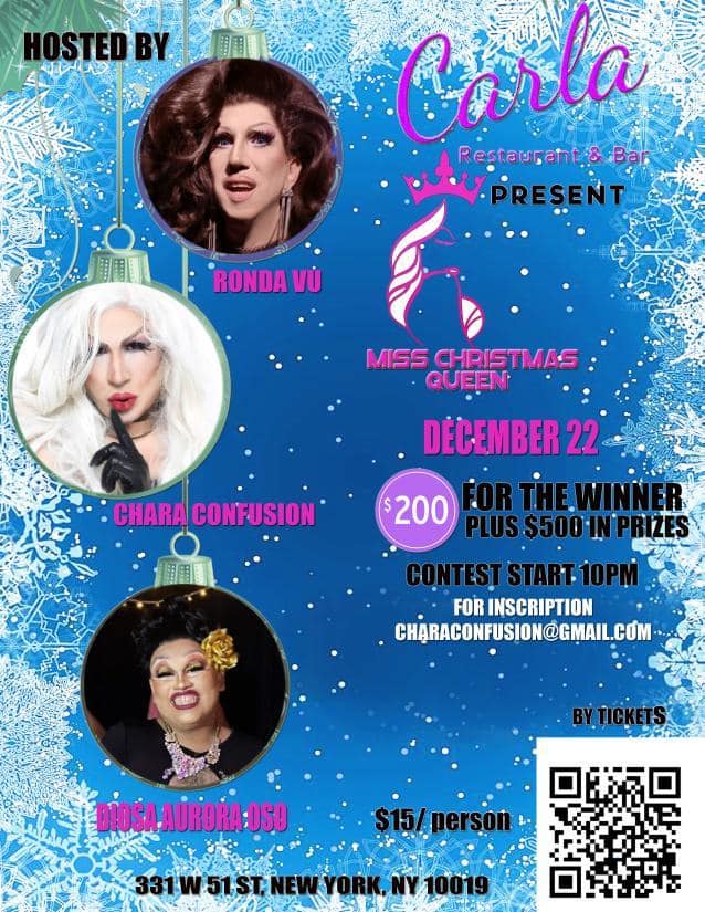 A holiday drag pageant tonight at Carla Restaurant & Bar in HK!