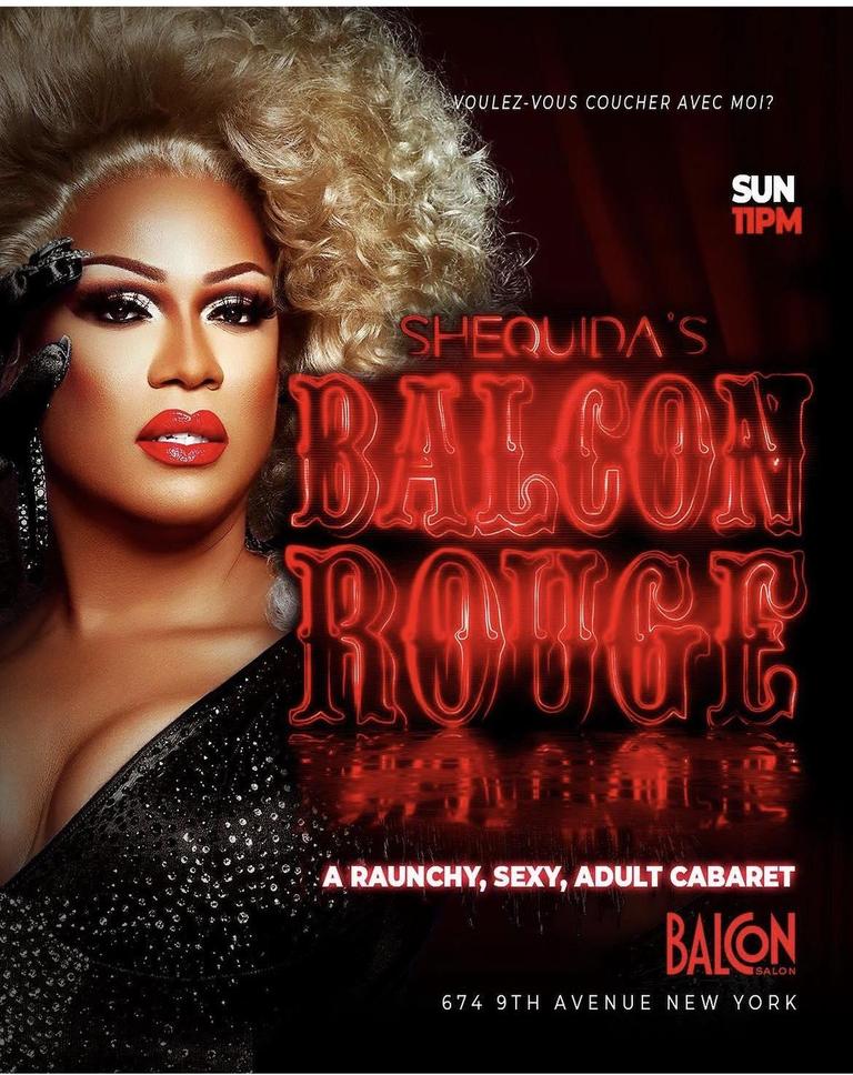 Shequida saw my booger drag one faithful night at “Drag Wars” and immediately threw me into “All-Stars,” the yearly pageant she runs with the “Drag Wars” girls. I was horrendous, but a determined little baby queen. Many open stages and resulting serious bookings later, we fast forward to May 2023 when she asked me to not only be in “All Stars” again (redemption!), but to star in Voss’ Pride event at Sony Hall. That one night launched me into something really serious with New York drag, and my second run at “All-Stars” got me a temporary spot at “Balcon Rouge” which turned permanent, of sorts. Shequida is very, very pivotal in this scene and has afforded me opportunities that put me on the map. Being under her wing the past year has been an honor. I owe her my naked body every single Sunday!