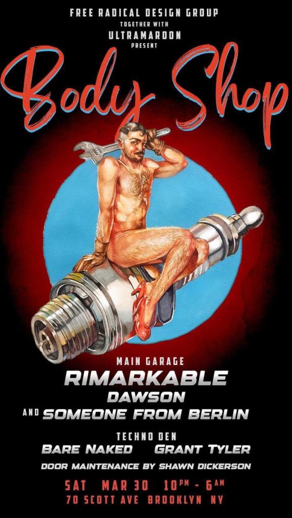 And looking ahead to March 30, we have “Body Shop” at a venue called The Chocolate Factory in Brooklyn! DJs Rimarkable, Dawson, Someone From Berlin, Grant Tyler and yourself will be spinning!