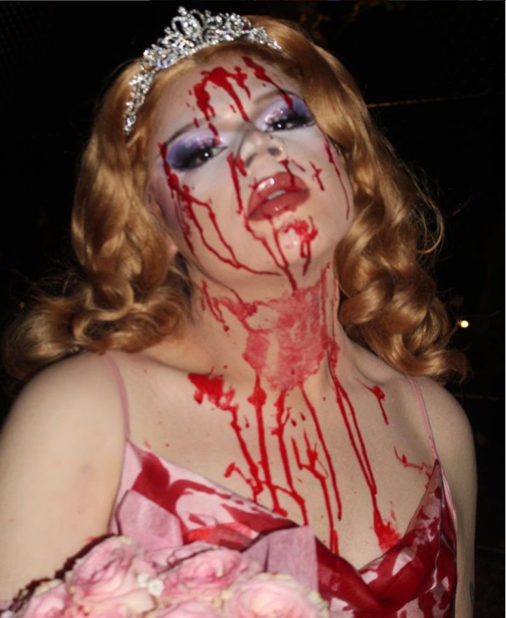 I was born and raised in San Diego, CA. I’ve wanted to do drag for quite some time, and knew I wanted my persona to be based on the Final Girl horror movie trope. I’ve loved horror films–particularly slashers–all my life, and really resonated with them growing up. The idea of survival and overcoming evil forces is something that a lot of queer people can identify with, and these themes have definitely helped me overcome adversity that I’ve gone through as a person. Maliboo is how I can channel such concepts, and how I’m able to incorporate heroines from media that have inspired me.
