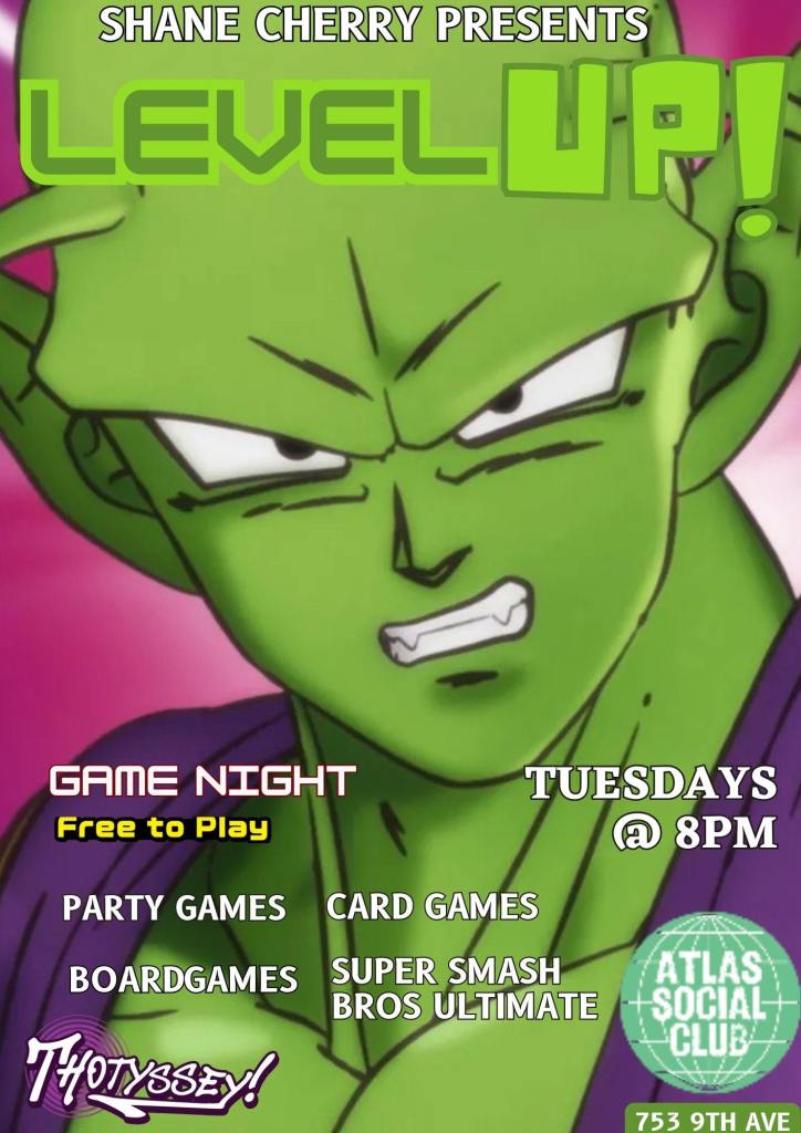 Pixie Aventura & Essa Noche (10pm) - ATLAS SOCIAL CLUB: “Level Up” geeky name night hosted by Thotyssey & Shane Cherry (8pm)