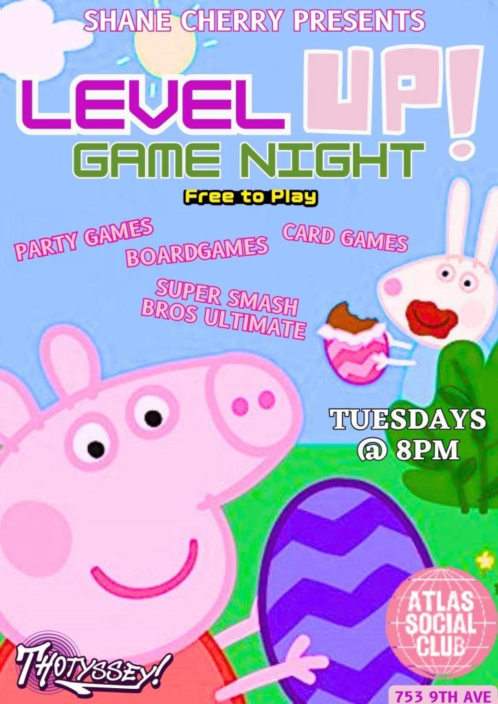 - ATLAS SOCIAL CLUB: “Level Up” geeky name night hosted by Thotyssey & Shane Cherry (8pm)