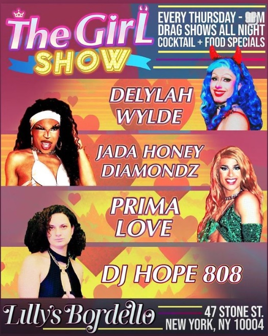The only thing that matters to me is, if they’re there for a show, they will get it. Whether they’re straight allies or queer siblings, I personally love to perform for anybody that wants to be there. The audience is always very mixed at Lilly’s! Especially between the Thursday night “Girl Show” and the Friday night Drag Race viewing parties. Lilly’s Bordello has the potential to be a real hot spot for all the queer folks in Lower Manhattan to not have to travel far to find a safe space. Bible and I really want to curate that.