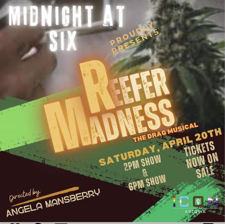 Werk! Next up will be, as you said, the Reefer Madness shadowcast appropriately on April 20th (showings at 2pm and 6pm) at Icon! For those not in the know, Reefer was originally an anti-marijuana propaganda film from the 1930s that draws some wild conclusions about the evils of cannabis; it became a camp classic in its own right that inspired a musical of the same name in the late 90s! What can we expect from Midnight at 6 and director Angela Mansberry’s take on it?