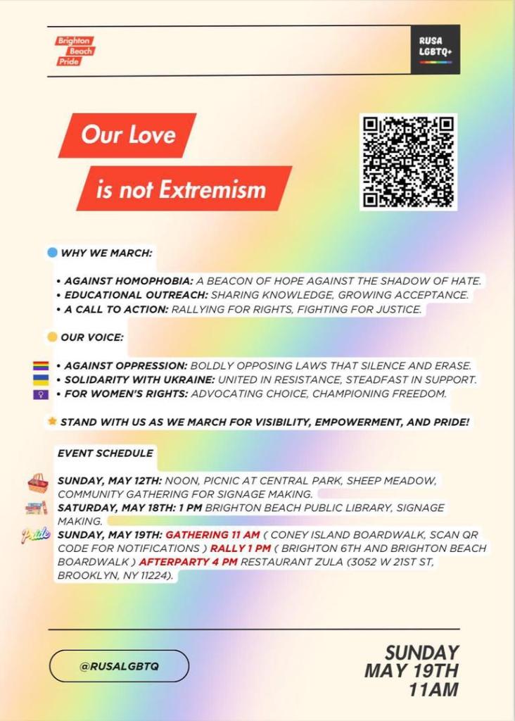 Come to Brighton Beach Pride on May 19th organized by RUSA LGBTQ+! It’s an incredibly important community event that feels like a true protest: it’s exhilarating, it’s powerful, and it’s a great reason to come to the beach! And then join us for the free afterparty at Zula, located in the historic Coney Island Amphitheatre, where we will be giving shows and kicking off 2024 Pride season!
