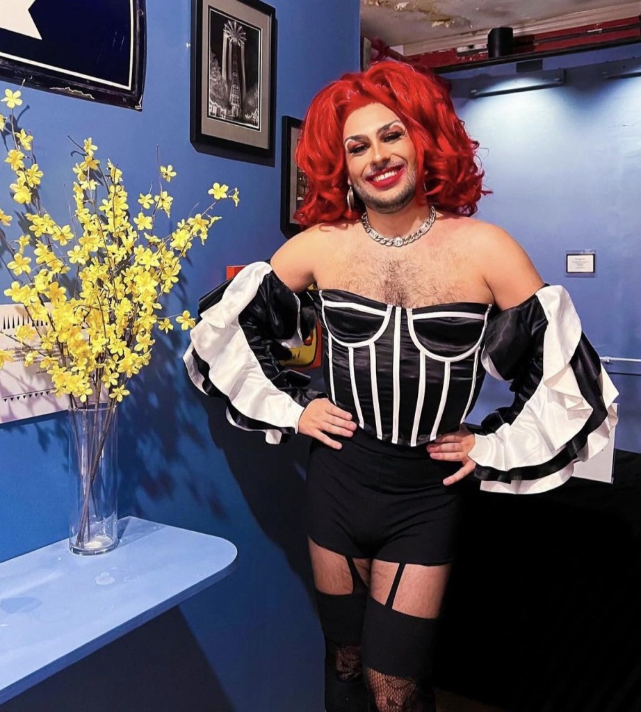 My drag started out of me seeing that there is just not enough representation for Eurasian drag artists. Before I started drag, I was an events producer and activist–my daytime job is coordinator for RUSA LGBTQ+. When Russia invaded Ukraine in 2022, my focus shifted on doing fundraisers for Ukraine in the queer nightlife community and I just could not find Ukrainian speaking drag artists. So one day, I decided to do it myself; I am, after all, a trained ballroom dancer (like all post-Soviet kids growing up in Brooklyn), and I have a Bachelors in theatre. Plus, I came up in the northern Brooklyn drag scene and learned the trade just by watching all my friends. So it’s been almost two years since I started doing drag.