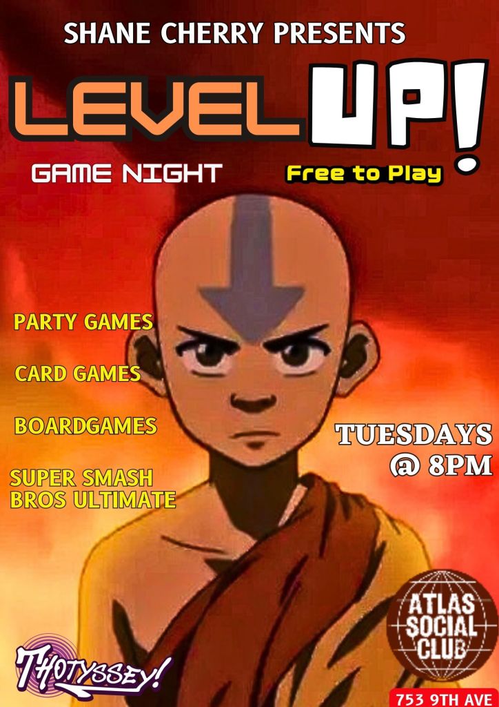 - ATLAS SOCIAL CLUB: “Level Up” geeky name night hosted by Thotyssey & Shane Cherry (8pm)