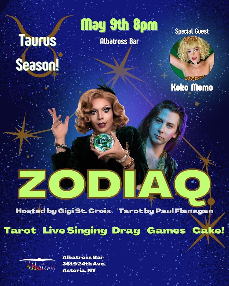 Then next Thursday, you’ll be back in Astoria for Gigi St. Croix’s monthly “ZODIAQ” at Albatross! What’s your sign?