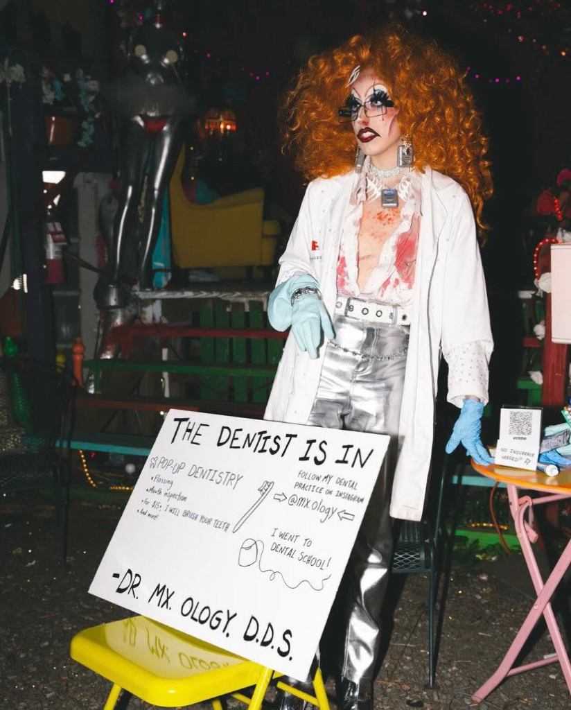 Everyone asks me! Literally earlier today, I said to Miss Woman that we’ve gotta break out her bartending flashcards so I can get this show on the road. Because!? Bartending in drag! Can you imagine the Category Five serve that would be!? Best I’ve got right now is the same St-Germain spritzes and weird little gin drinks I make myself at home. So watch this space. I am, however, a real dentist!