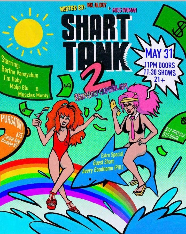 A fun fact about this show is that the sharts (Miss Woman, special guest, and myself) also don’t know anything about what products the entrepreneurs are pitching, so we get to be just as surprised as the audience. Having those authentic reactions is so magical. Plus, we raffle off one of the products near the end of the show! Not to mention sketches, commercials, duets, numbers, and a whole lot of blow! We are business professionals! “Shart Tank 1” was described as “the most absurd hilarious experience I’ve had at a show maybe ever” (shoutout Juicy Stiff)! Sounds like something you wouldn’t want to miss, no? Come ring in Pride Month with us at Brooklyn’s tightest, wettest, most business casual summer kickoff!