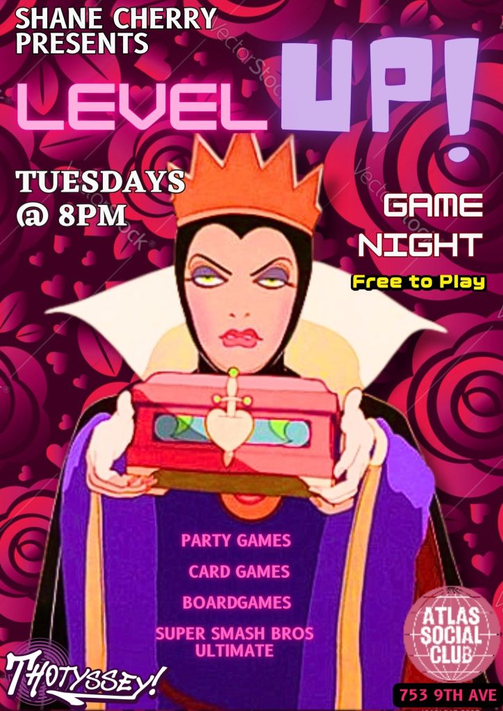 Pixie Aventura & Essa Noche (10pm) - ATLAS SOCIAL CLUB: “Level Up” geeky name night hosted by Thotyssey & Shane Cherry (8pm)