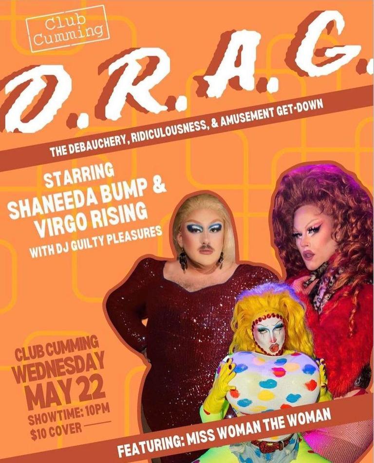 You actually have a recurring show with Virgo Rising at Club Cumming called “D.R.A.G. (The Debauchery, Ridiculousness and Amusement Get-Down),” which returns Wednesday May 22nd with special guest Miss Woman the Woman.