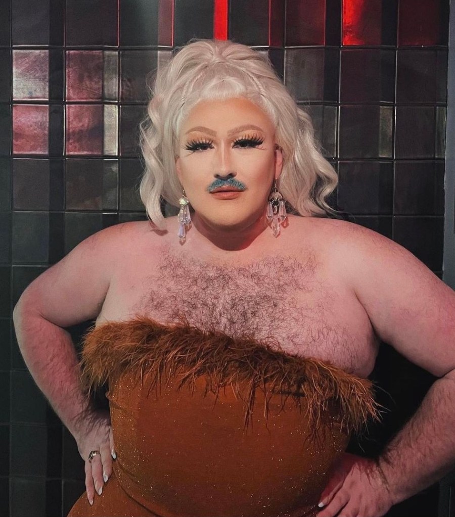 The bearded / hairy drag aesthetic is much more common now, but it still might prove surprising to fans who get their drag solely from, say, Drag Race!