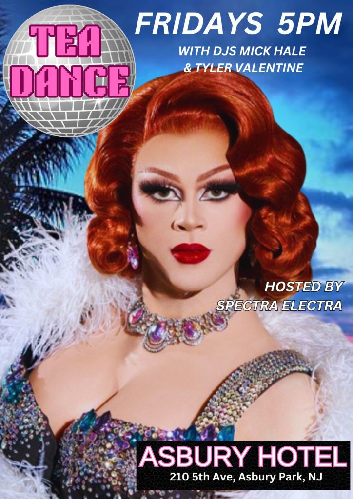 So The Asbury Hotel actually has a tea dance every Friday, featuring DJs Mick Hale and Tyler Valentine who will be rotating in; I will be the host every Friday this summer! They asked me to help them bring drag back to the tea dance after two years post-Covid, and I’m very excited to watch this event grow to its former glory. We want to promote everyone starting their weekend at the Asbury Hotel, and ending their weekend at Paradise with their tea dances!