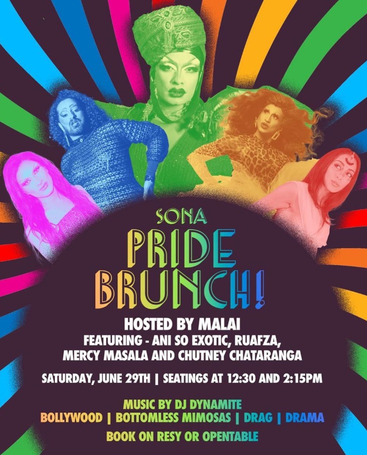 To close out Pride month, I’ll be DJing an epic drag brunch at Sona where five (yes five) drag queens will perform for you while you taste delectable Indian food.