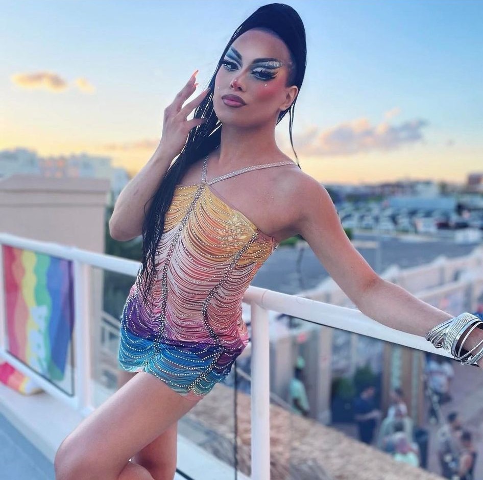 I like to make my drag very Latina-oriented; any references I can incorporate or feature, I try to add it to the illusion. I can’t even try to sound bougee about this, but my drag is 1000% stripper coded. I love being naked and free. You’ll hardly catch me in a long sleeve or a covered leg; it happens like once every two months, lol! In regards of music, I love to dance and move around–I’ll do a cute ballad here and there, but I mostly aim for reggaeton and pop music.