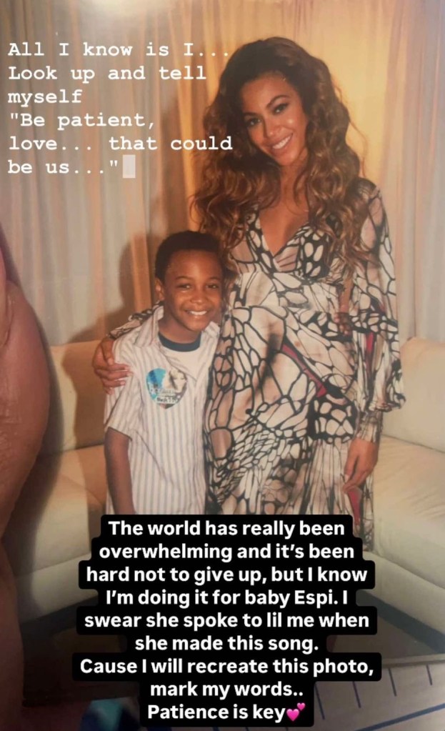 You recently shared a Reel of who I must assume is Little Espi with the Queen Bey herself! How did this meeting happen?