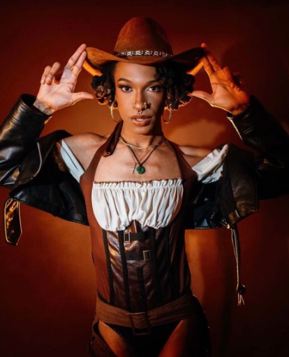 If I could use one word to describe my drag, I would say tantalizing. A lot of people tell me I remind them of Ciara or Janet (the highest honor), so most people would probably say I’m a dancer, because it’s my go-to–given it’s my background. But being in New York has pushed me to do more ballads and quirky mixes. I can go from Beyoncé to Gorillaz to Sade. I’m usually a tight, leather girly, but lately I’ve been embracing my southern pride–so my looks have been very Wild West inspired.
