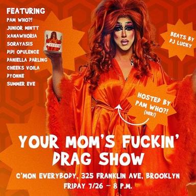 The next traveling edition of “Your Mom’s Fuckin’ Drag Show” will be at Brooklyn’s C’mon Everybody on Friday!