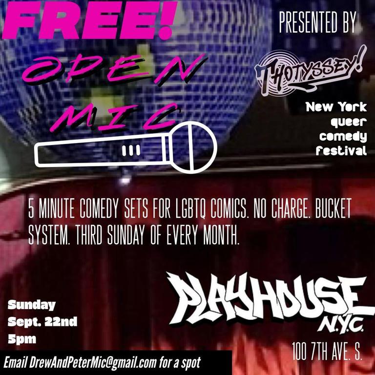 On Sunday 9/22, the New York Queer Comedy Festival & Thotyssey NYC present an open mic comedy night at Playhouse Bar, starting at 3pm! Email here for a spot. Come out and support New York’s next queer comedy stars in one of the hottest venues in the West Village!