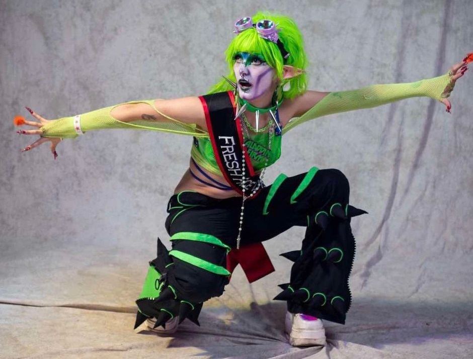 I’d say my drag started as a tribute to 70s glam and retro pastiche, but has grown into the club kid from space you see today! I draw lots of inspiration from Vaudeville, Old Hollywood, glam rock, sci-fi, fantasy, and lots of countercultural genres and movements like punk, new wave, goth, metal, hardcore, cyberpunk, the club kid scene, and more.