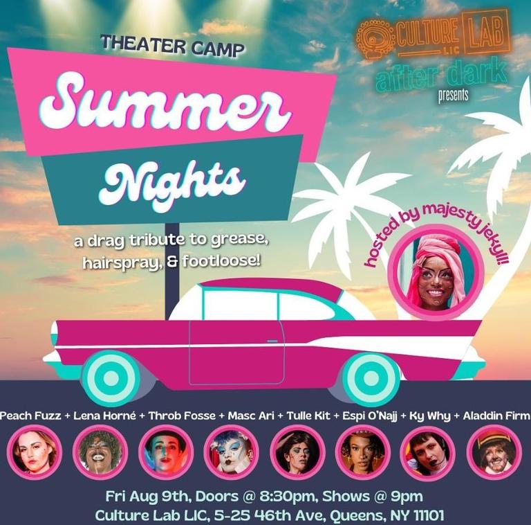 I’m so excited for Theater Camp at Culture Lab! The last show I did with them was their CATS show, which was an absolute blast. This next show is called “Summer Nights,” which will be drag tributes to some of your favorite songs from Grease, Footloose, and Hairspray! You can expect to see (and hear) live singing, dancing, draglesque… and if I’m not mistaken, a standup comedy set. I’m hoping to sing and dance to something fun from Hairspray, but don’t wanna give too much away! The cast is stacked, there are a couple of my favorite performers sprinkled in, as well as some people I haven’t had the pleasure of meeting yet. Theater Camp always has impeccable casting choices mixed with such high-energy music, so this is bound to be a good time! If you’re planning to come see it, put on your dancin’ shoes!