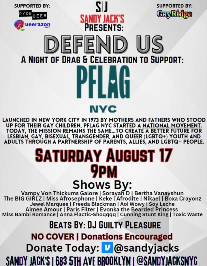 And on the 17th, you’ll be at Sandy Jack’s for large cast benefit for PFLAG! An amazing lineup for a great cause!