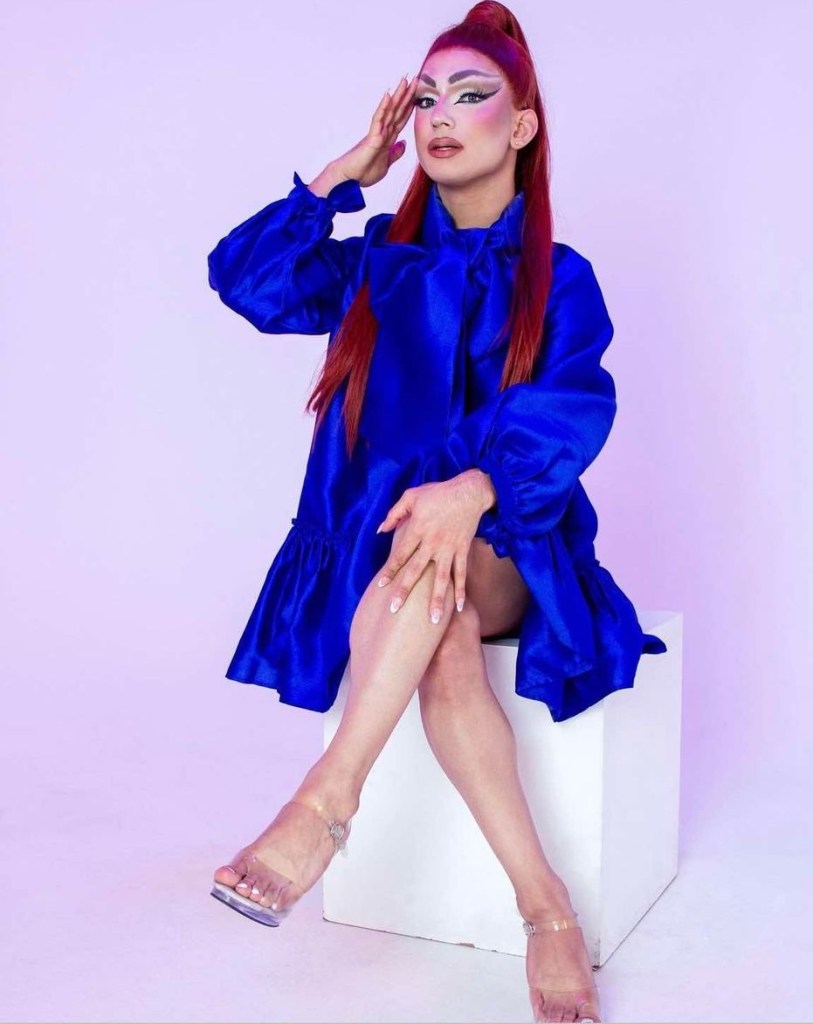 I will describe my drag as commercial drag, as the future of drag. I am a dancing queen. I will dance the house down bootz! I love dancing, I love pulling tricks… and also I call myself a good entertainer. I feel like I have the full package: I will dance, I’m good on the mic, and I could be funny… sometimes!