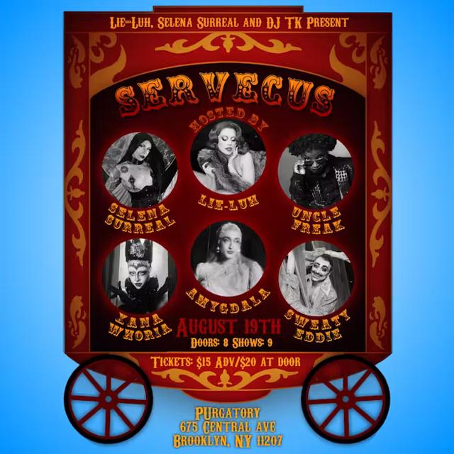 Yes! “Servecus” is the creation of Lie-luh and coproduced by TK the Kid (in-house producer at Purg) and myself. It’s going to be a cunty cabaret-esque circus themed show with everyone filling various circus roles, Lie-luh as the Ringleader, Sweaty Eddie as The Contortionist, Uncle Freak as The Clown, Amygdala as The Fortune Teller, Xana Whoria as The Magician, TK as the band and myself as The Strong Woman. It’s going to be a high energy, very strange and sultry time!