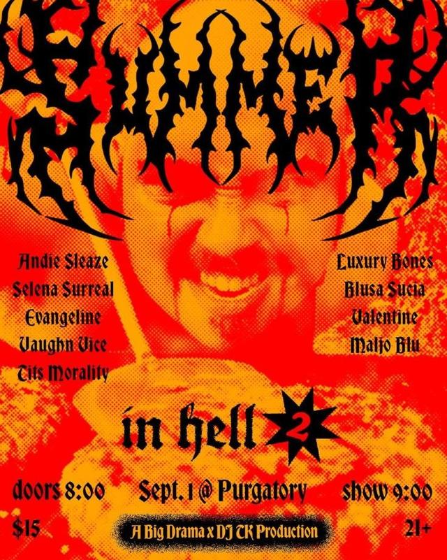 Yes, That’s a Big Drama Production, the production team of Luxury Bones, Andie Sleaze and myself! All the big drama shows are deeply immersive and theatrical, and this one is no different! It’s spearheaded by the masterminds Luxury and Andie as a follow-up to the smash hit first one at All Night Skate last August. “Summer in Hell 2” is an end of summer bash… in Hell… again! It’s gonna be a wet, wild and spooky time!