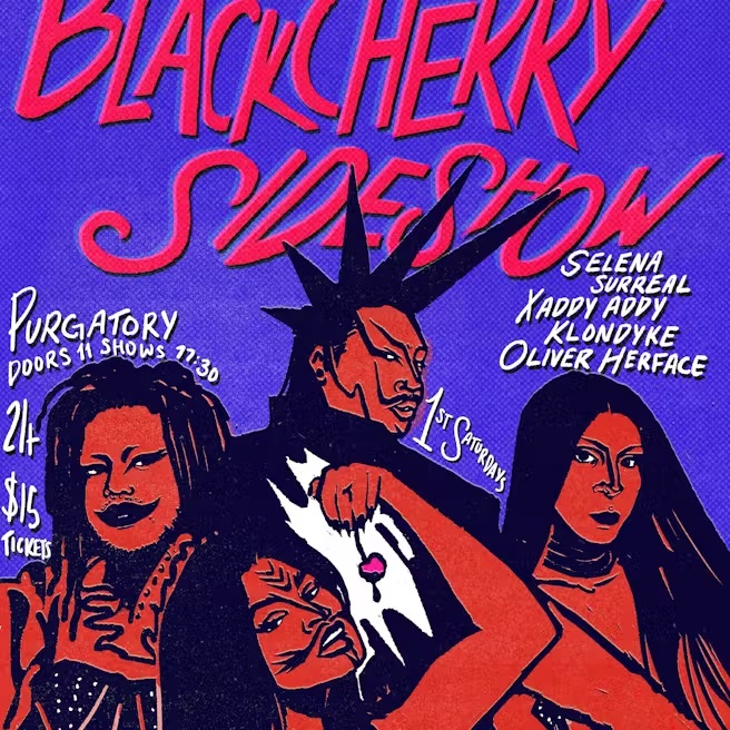 Black Cherry is the first all BIPOC sideshow ever, and also the first all Trans sideshow troupe ever. It’s every first Saturday at Purgatory, so next one is September 7th. Tickets are already on sale! It’s also going to be the first show since May where the entire troupe is there. At the last three shows, at least one of the cast but me has had to miss it, so this will be our first one all back together again!