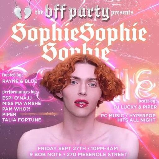 And then that energy carries into the “SOPHIE SOPHIE SOPHIE” edition of Blue and Rayne’s “BFF Party” at 3 Dollar Bill the very next day.