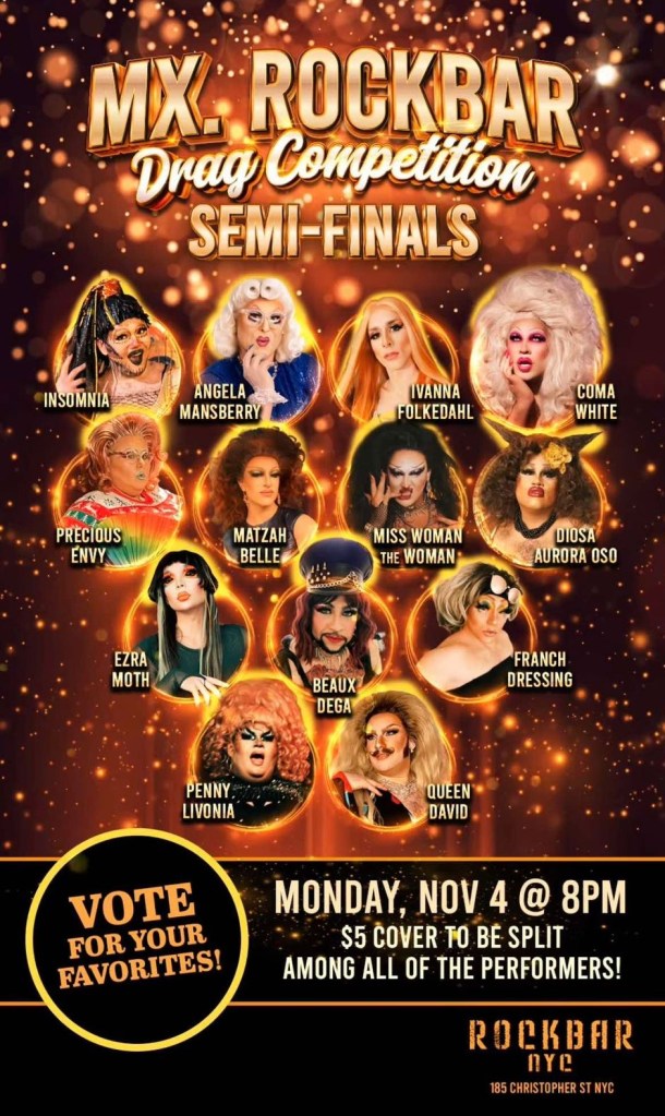 Im excited for Monday’s semifinals; prep work is happening as we speak. I love everyone who’s competing. I’m just ready to show the audience and the judges more of who I am. Rockbar has been a safe space for me, both in and out of drag, so being the next Mx. Rockbar would be amazing.